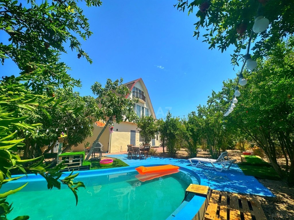 Xezer rayonu Merdekan qes çox prestijni bir ərazidə Bravo Qala yolu 4 sot torpaq sahesinde 1 mertebeli 115 kvm bag evi satılir. holl ,1 zalstudiometbext , 3 yataq otagi,2 sanuzeli movcuddur.Heyetinde hovuz, manqalni ,yay qiw cambalkonlu ,bisetka , sanuzeli ,dekorativ ağaclar , distansiyonu qapisi var. Qazi ,işığı ,suyu daimidir.Sendler tam qaydasındadır.( Kupça)