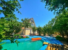 Mərdəkanda 3 sot torpaqda inşa edilmiş 2 mərtəbəli bağ evi satılır .Ümumi sahəsi 2180kv, 4 otaqdan ibarət,1-zalı 3 yataq otağı 2-sanuzeli,hündür tavanlı, zövgle təmir edilib, istilik kombi sistemidir. Keyfiyyətli tikinti materiallarından istifadə olunub. Yay mətbəxi,besetkası hovuzu dekorativ ağacları və s.movcuddur .Yolu asfalt, ev tam infrastrukturlu yerdə yerləşir, və il boyunca yaşamaq üçün yararlıdır.İçməli suyu,qazı,işığı daymidir. Sənədlər qaydasındadır, kupçası var.