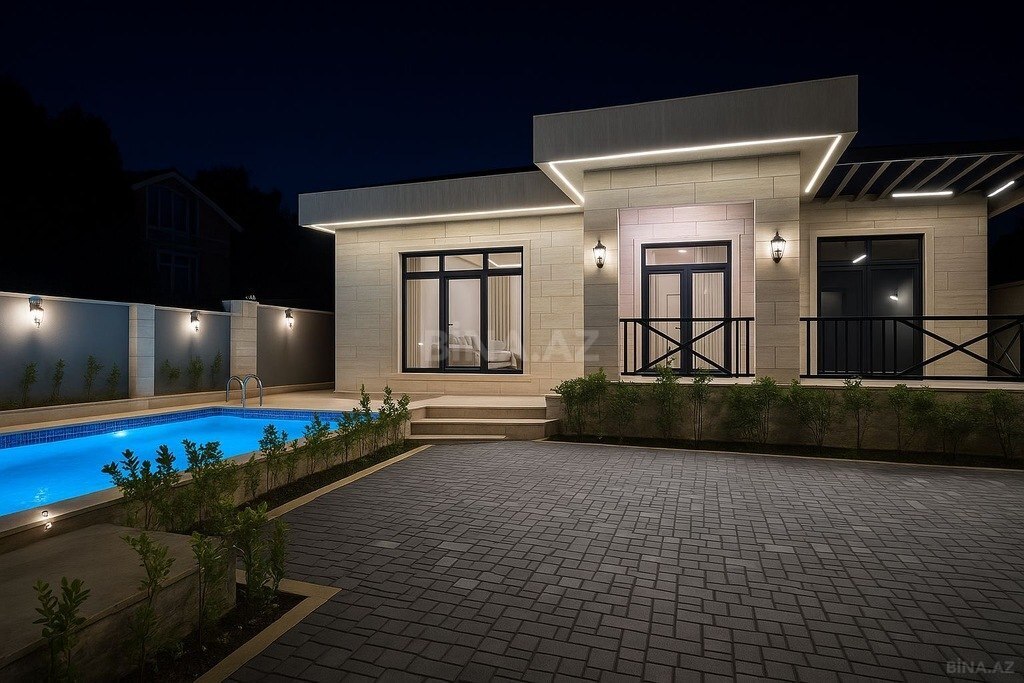 Elit mehlede ,brend eşyalı, 8 avtomobilliy parking zonası,generator,qaraj,qonaq evi,gozetci evi,manqalni,sohbetgah daxilinde metbex,boyuk daşma hovuz,evin daxilinde 2 metbex,qonaq otaqı,4 yataq otaqı,iş otaqı,filim studio,4 sanitar qovsaq,cakuzi,sauna