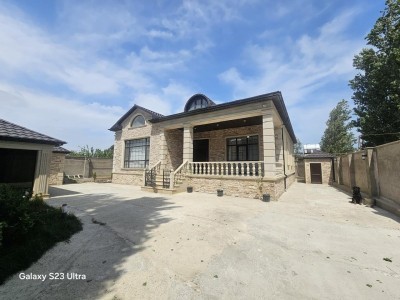 Abşeron r. Novxanı qəsəbəsi əsas yoldan 150 metr məsafədədir 7 sotda 6 daş kürsülü 12 kalonlu 1 mərtəbəli 6 otaqlıdır.Tavan hündürlüyü 3.60 metr.Evi şəxsi yaşayış üçün tikilib. 2022 ci ildə. Ev bütün əşyalarla satılır. Təcili olduğu üçün bu qiymətə endirildi. Xaricə getməklə bağlı təcili satır. Evin bütün döşəməsi isti poldur. Həyətdə içində sanuzeli olan 50 kv-lıq qış-yay mətbəxi var. Həyətdə girişdə keyfiyyətli aqlay daşlarla bəzədilmiş uzaqdan idarə olunan jalyüz və damafon sistemi ilə işləyən qapısı var. Hər tərəfinə kamera quraşdırılıb. Bütün sənədləri qaydasındadır. Çıxarışlıdır. KOD:8587
