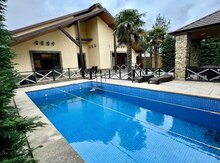 Həyətində hovuzu, manqalı, sanuzel kombi otaqi zapaz su cəni muşahidə kamerasi maşın saxlamaq üçün sahəsi, geniş yaşıllıq ərazisi və müxtəlif növdə dekorativ ağacları var.