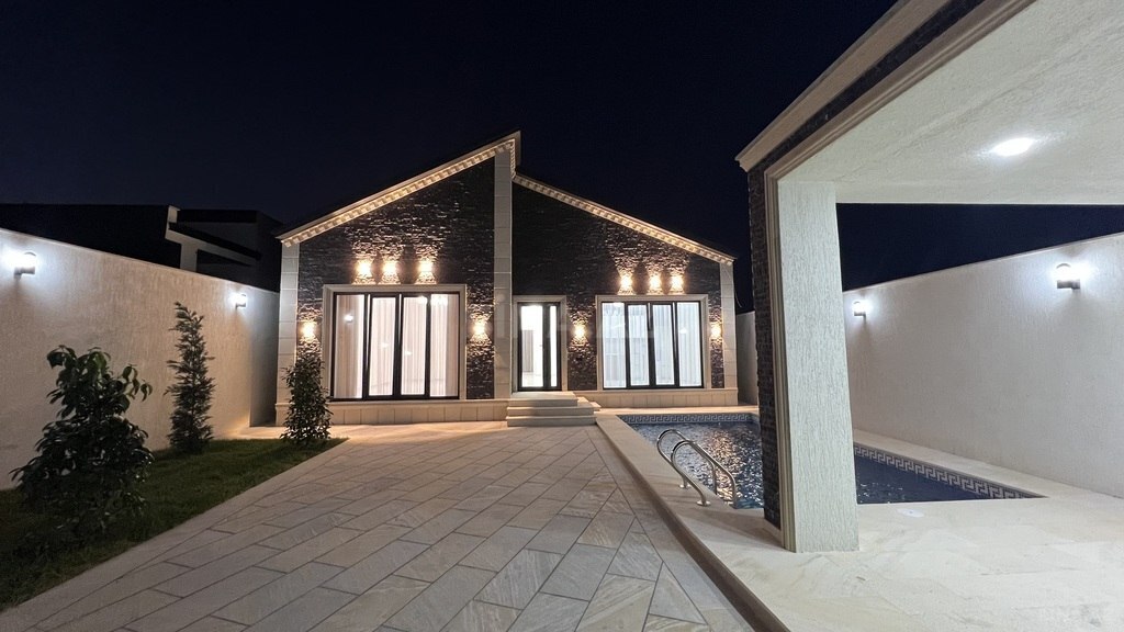 Mərdəkan yolunun düz yanında Avropa stilində tikilmiş evdir həyətində meyvə və dekorativ ağaclar manqal hovuz besedka əla təmirli paket kupçası var əlaqə vatsap