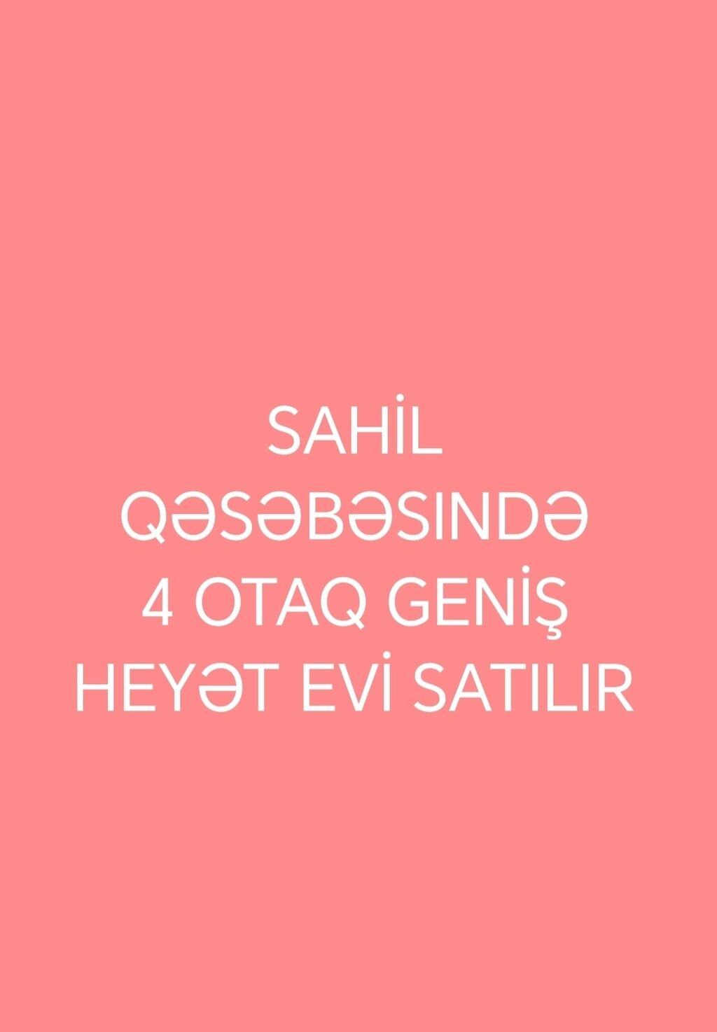 Sahil qəsəbəsində 4 otaqlı, geniş həyət evi satılır.