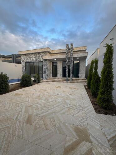 Ümumi sahəsi 180 kv, 4 otaqdan ibarət,1-zalı 3 yataq otağı 2-sanuzeli,hündür tavanlı, zövgle təmir edilib, istilik kombi sistemidir. Keyfiyyətli tikinti materiallarından istifadə olunub. Yay mətbəxi,besetkası hovuzu dekorativ ağacları və s.movcuddur .Yolu asfalt, ev tam infrastrukturlu yerdə yerləşir, və il boyunca yaşamaq üçün yararlıdır.İçməli suyu,qazı,işığı daymidir. Sənədlər qaydasındadır, kupçası var.