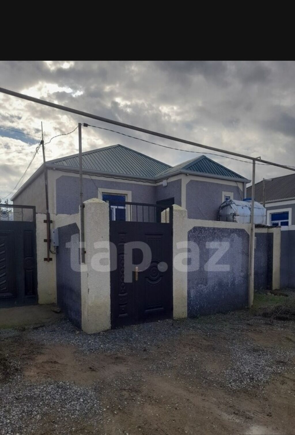 Həyətində hovuzu var, meyvə ağacları var, Əlavə su çəni var.