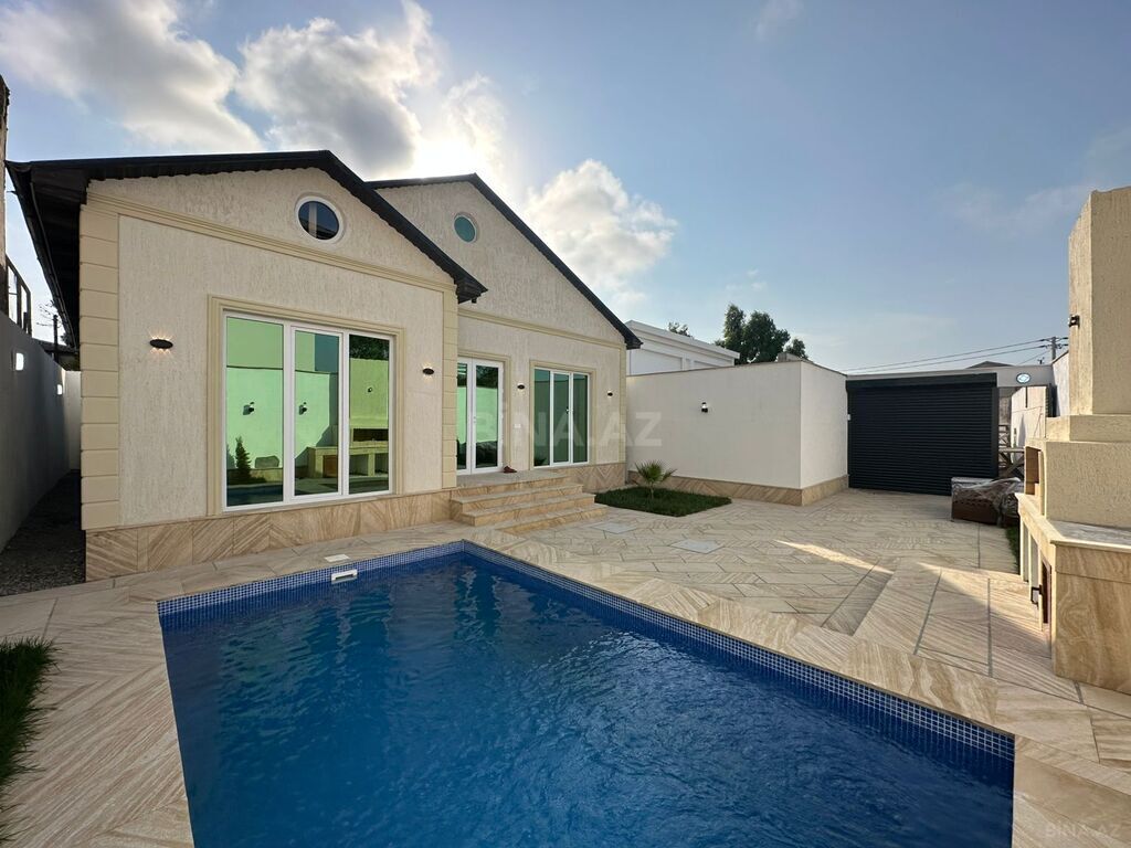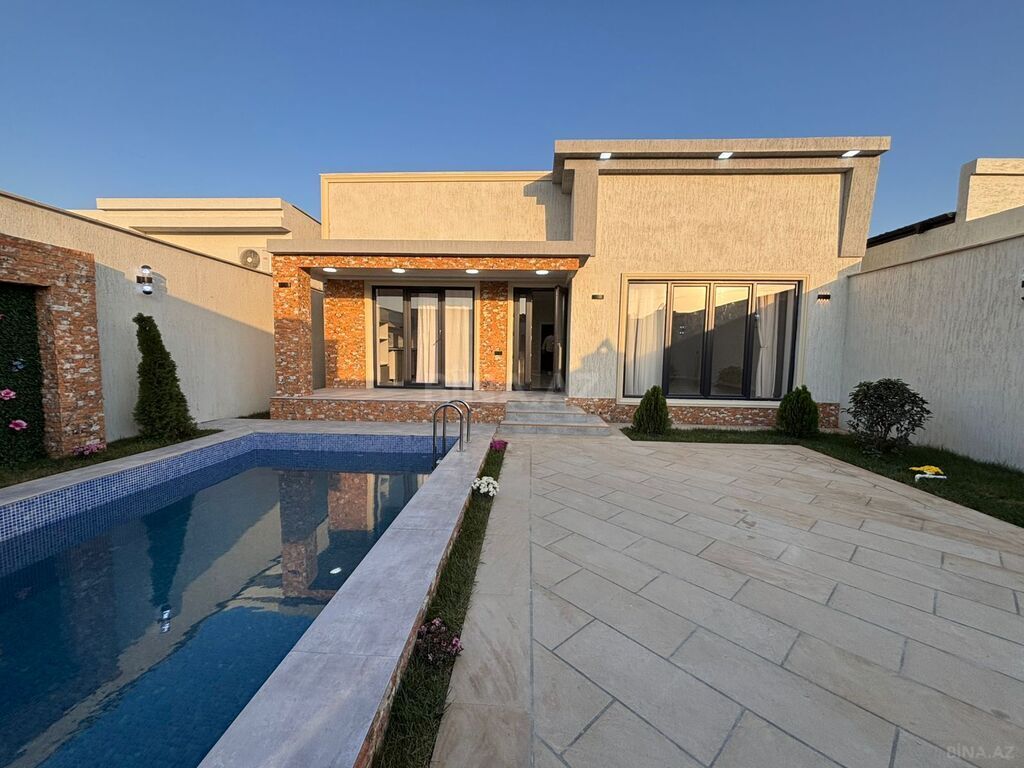 – Aşağı mərtəbədə 1 geniş otaq, mətbəx və əlavə olaraq qapalı hovuz, sauna, hamam-tualet sahəsi və veranda