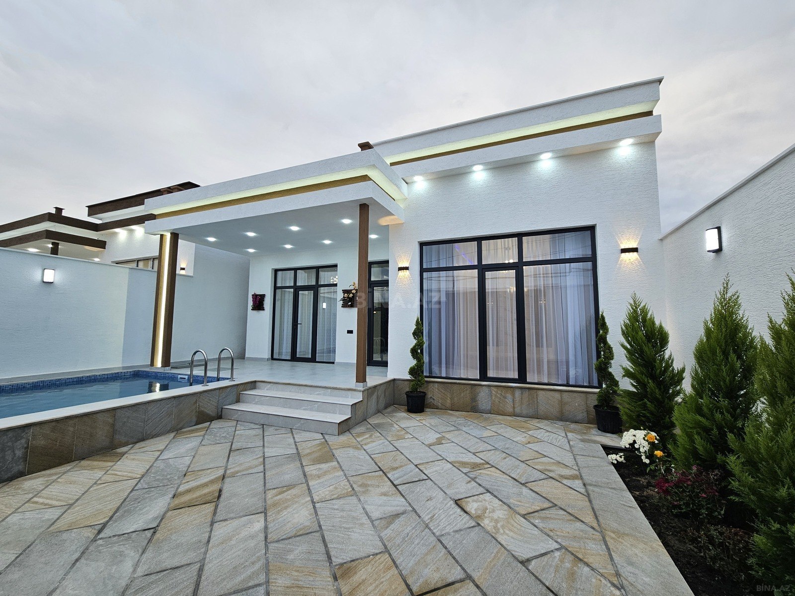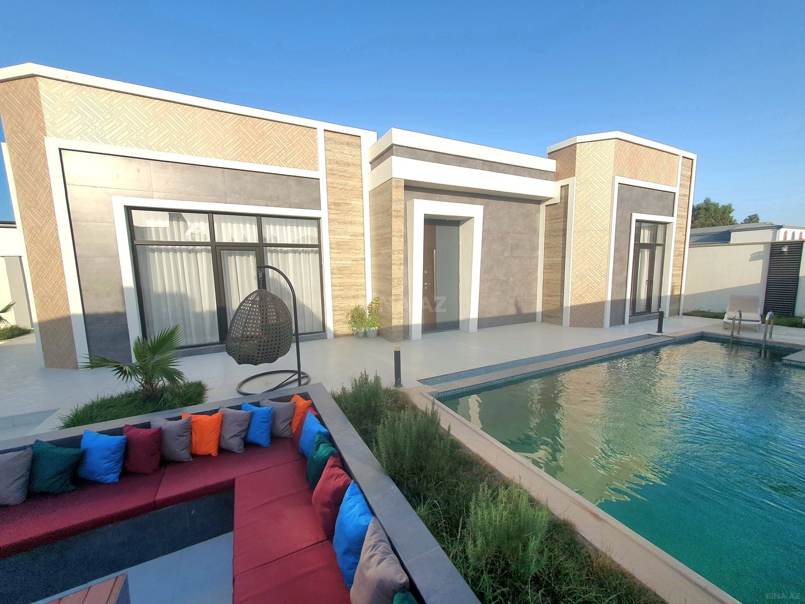 - Rahatlıq: Hovuz / Besedka cam balkon / Terras