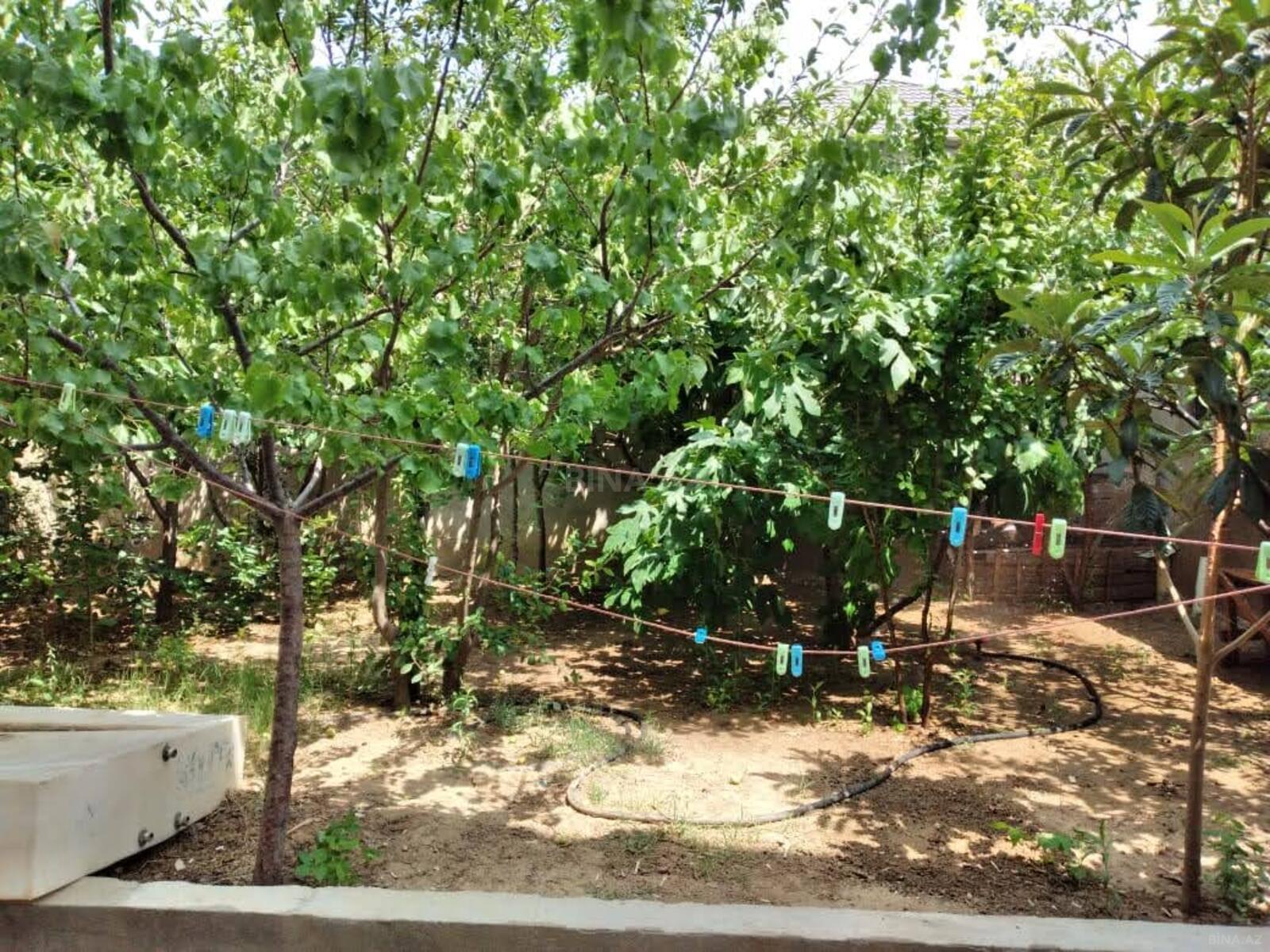 Həyətində: meyvə ağacları, sanuzel, əl-üz yuma, anbar, manqal, samovar mövcuddur.
