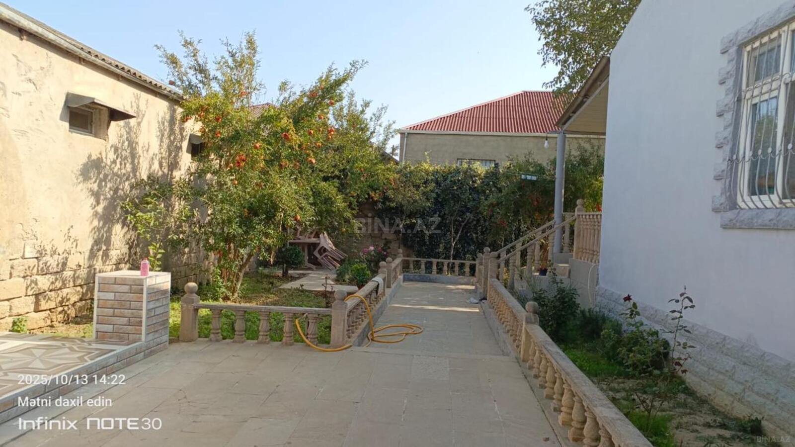 Binə qəsəbəsi sovxoz sağa gedən yol 2ci küçədə 3otaq təmirli həyət evidir.Mərkəzi yola 160 metr məsafədə yerləşir.Umumi torpaq sahəsi 2sot həyətinə 2 maşın yerləşir Ən elit yerdədir