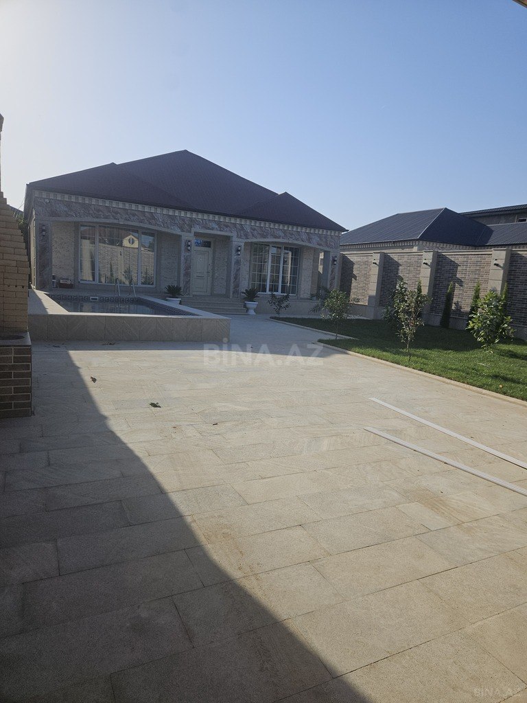 Binə qəsəbəsi, Mehriban qonşular (şəhid qardaşlar küçəsi) 5+ sotun içində, 150 m² iki mərtəbəli, yerdən 4 daş hündürlükdə həyət evi. Qaz, işıq, internet daimidir, su üçün daşdan tikilmə 8 tonluq hovuzu var. Öz evimdir, sıfırdan özüm tikmişəm, ev fundament üzərindədir. Zirzəmisi, kombi sistemi, kondisioneri var. Bəzi əşyalar danışıqdan asılı olaraq saxlanılacaq. Torpaq öz adımadır.