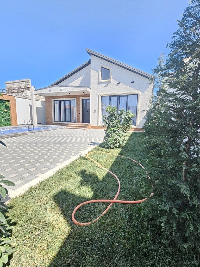 Bag merdekan qes bravo market yolu yoldan 120 mert mesafede etraf villalar olan psristijli erazide insa olunub. 1 zal, 3 yataq otagi, 1 metbext, 3 san/q hamam, teras, sohbetgah, manqal, filtirni hovuz, dekorativ agaclar ve yasiliq zonasi var. Qaz, isiq, sirin su, optik internet, yolu asfaltdir.