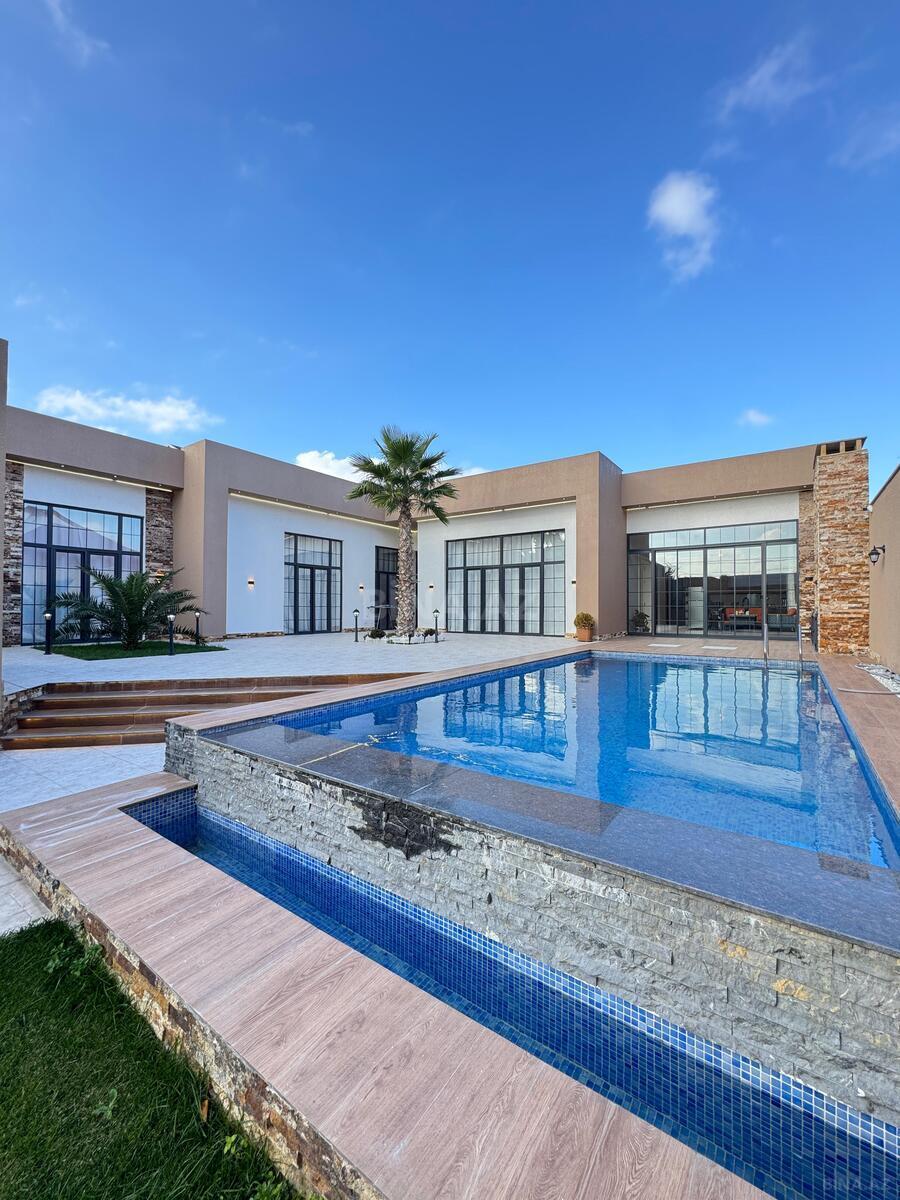 TƏCİLİ !!! Mərdəkanda 7 sot torpaqda inşa edilmiş tam əşyalı bağ evi satılır .Ümumi sahəsi 270 kv, 5 - otaqdan ibarət,1-zalı 4 yataq otağı,1 - mətbəxt 4 - sanuzeli,hündür tavanlı, zövgle təmir edilib, istilik kombi sistemidir. İsti döşəmə. Keyfiyyətli tikinti materiallarından istifadə olunub. Yay mətbəxi,besetkası hovuzu dekorativ ağacları və s.movcuddur .Həyətində su quyusu var.3 - faza elektrik xətti çəkilib.Yolu asfalt, ev tam infrastrukturlu yerdə yerləşir, və il boyunca yaşamaq üçün yararlıdır.İçməli suyu,qazı,işığı daymidir. Sənədlər qaydasındadır,Paket kupçası var.