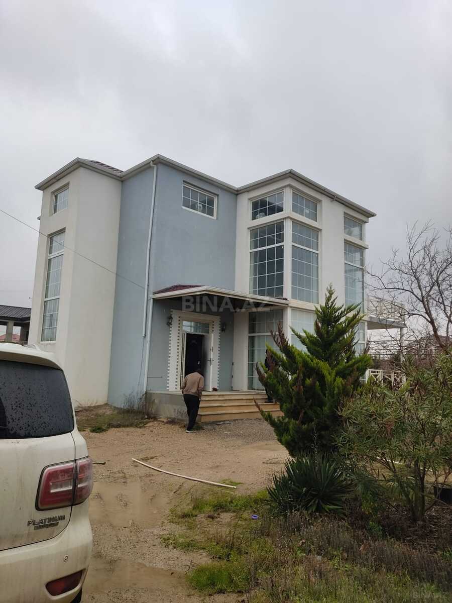 Saray qəsəbəsində, 3 nömrəli tam orta məktəbin və Bakı-Sumqayıt yolun yanında. Kürsülü 3 mərtəbəli super təmirli ev. 3 sanitar qovşağı,2 mətbəxi, böyük terassası, gözəl gölə panoraması var. Hasarın hündürlüyü 3 metr, həyətə tamet vurulub, çox baxımlı bağı var, qazon,qızıl gül kolları, 57 ədəd bar gətirən müxtəlif meyvə ağacları.