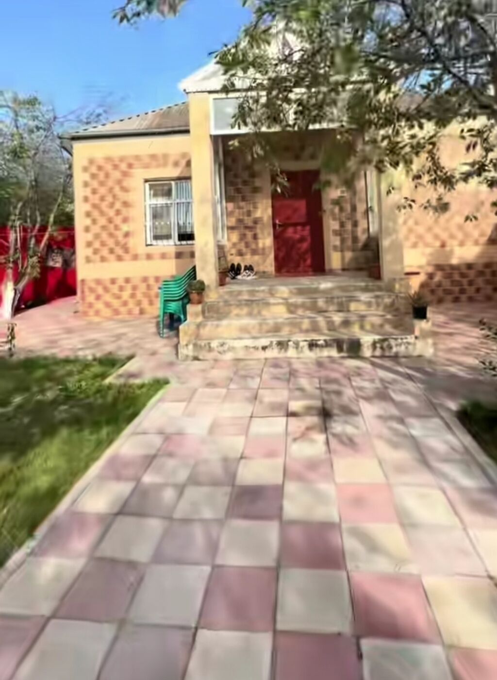 Həyət tamet daşla , pi̇lləkən aqlay daşla döşəni̇b .