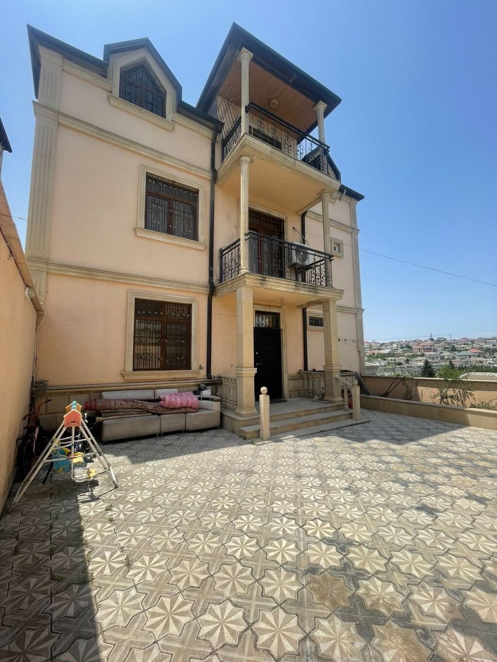 2 ci mertebesinde - 4 yataq otaqi, xoll, 2 sanuzel, 1 boyuk eyvan var.