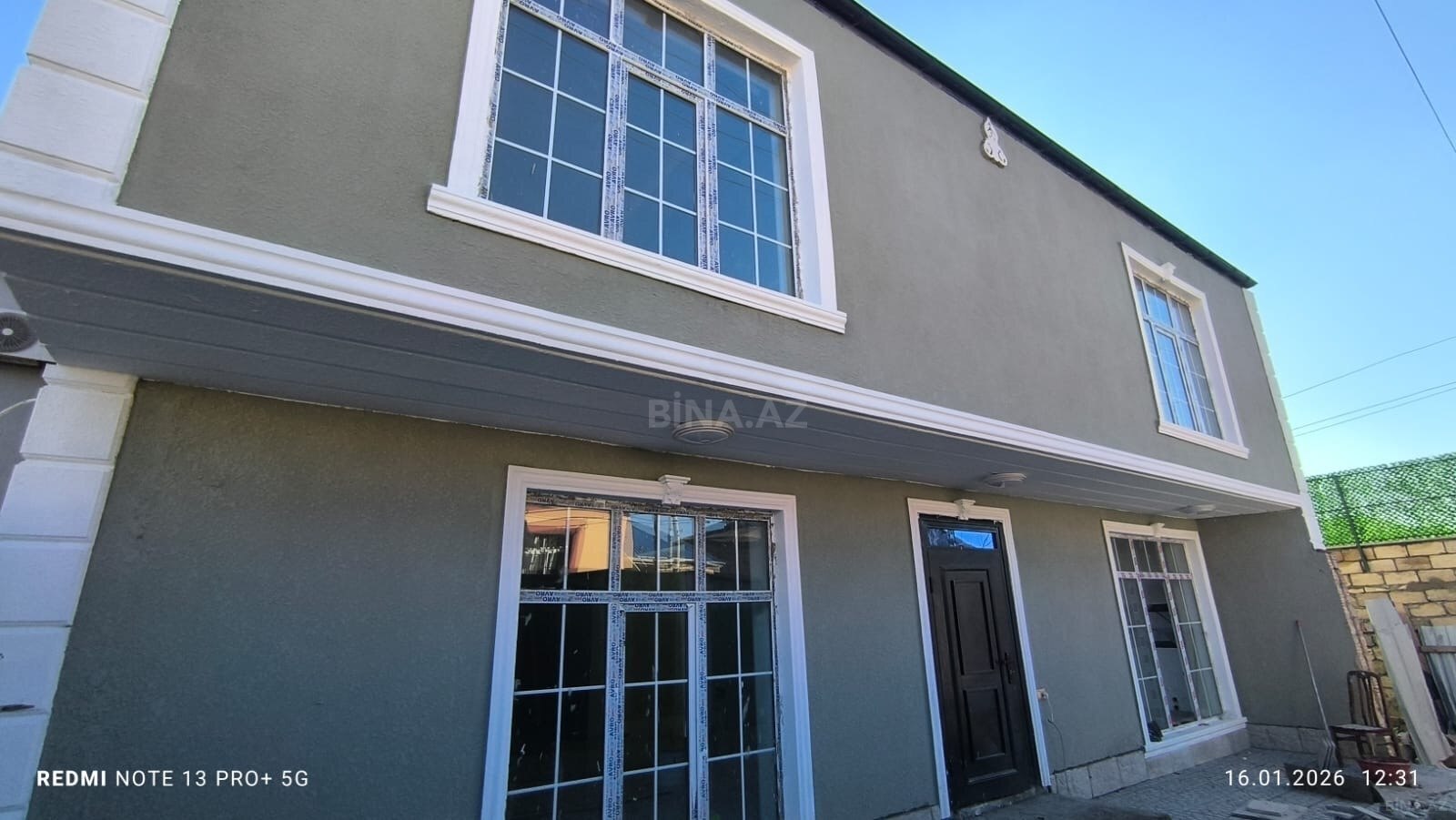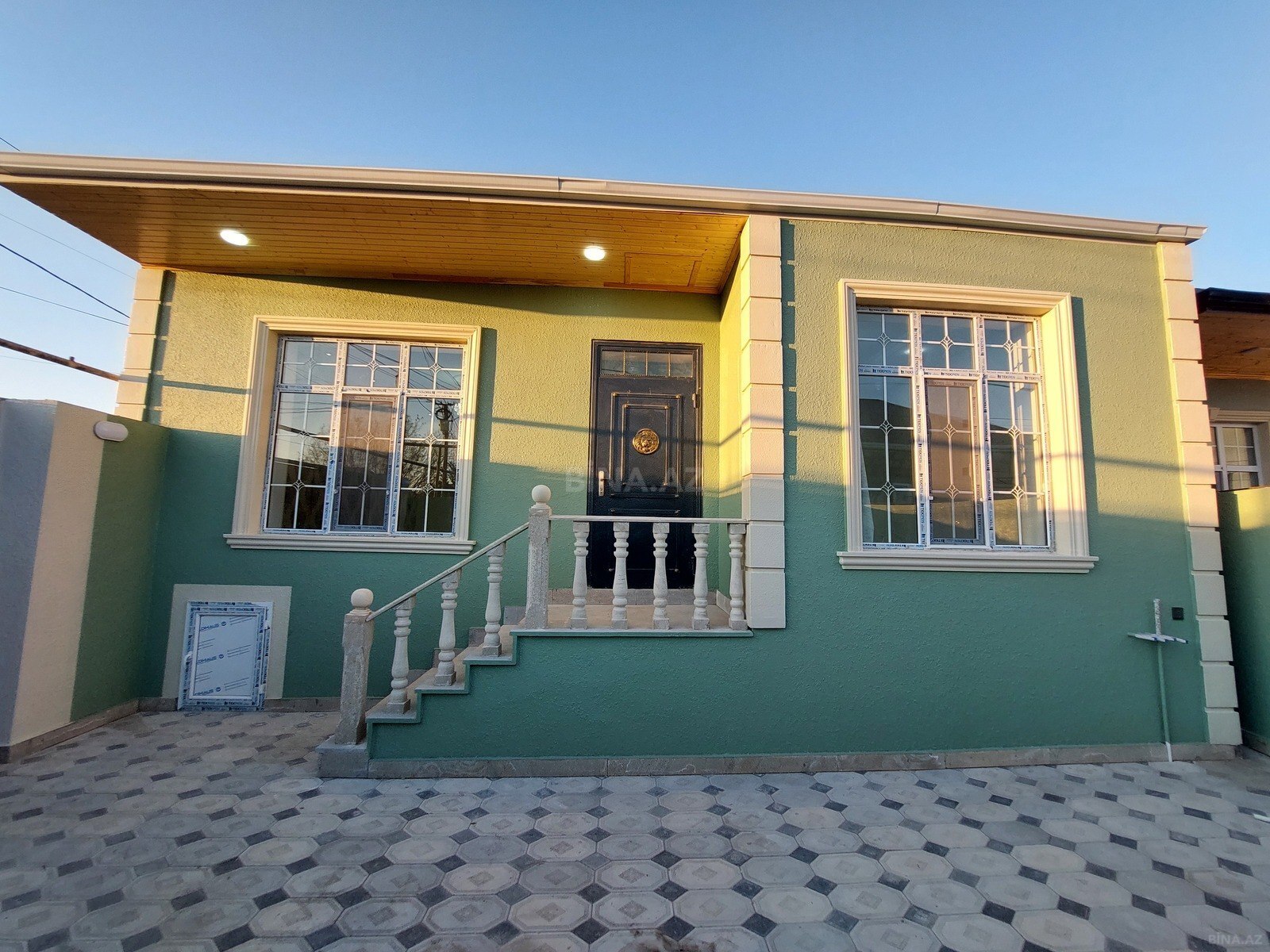 - Dəmir barmaqlıqlı pəncərələr, xarici fasad boyalı