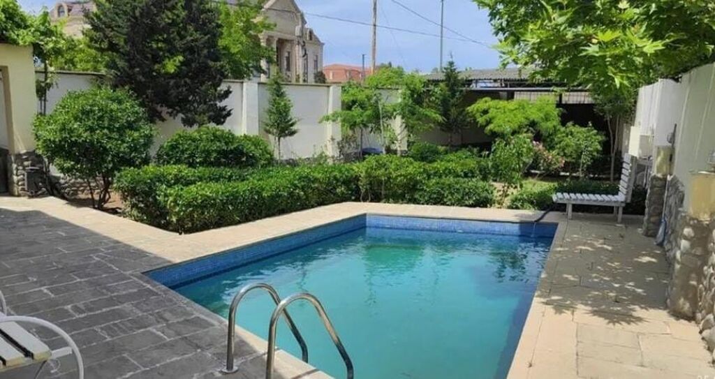 Tecili!!! Merdekenda 5 sot torpaq sahesınde,tam eshyalı bag evı satısha cıxıb.Ümumi sahəsi 180 kv, 4 otaqdan ibaretdır.1-zali,korıdor,metbex.3 yataq otagı, 2 sanuzeli var.Hündür tavanlı, zövgle temir edilib, istilik kombi sistemidır. Keyfiyyetli tikinti materiallarında istifadə olunub. yay,qısh metbexi,cam balkon,besetkası,fılterlı basseyn.Yolu asfalt, ev tam infrastrukturlu yerde yerlesir, ve il boyunca yasamaq ucun yararlidir. icmeli suyu,qazi,ıshıgı daymidır. Sənədlər qaydasındadır, kupçası var.