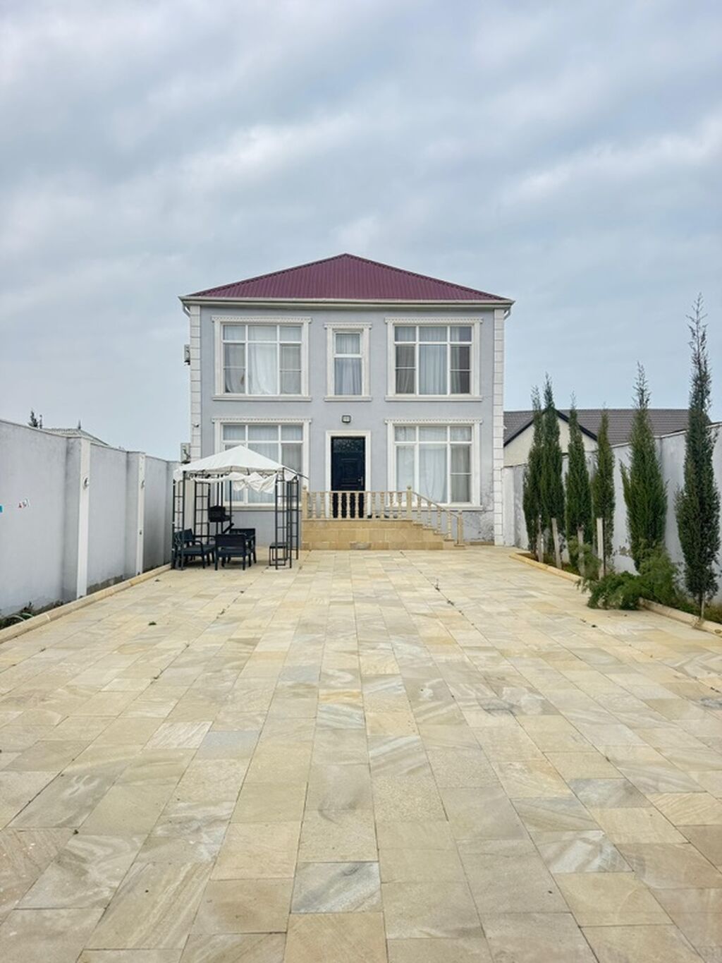 Satılır: İki mərtəbəli, müasir fasadlı fərdi yaşayış evi və geniş həyət-baca.