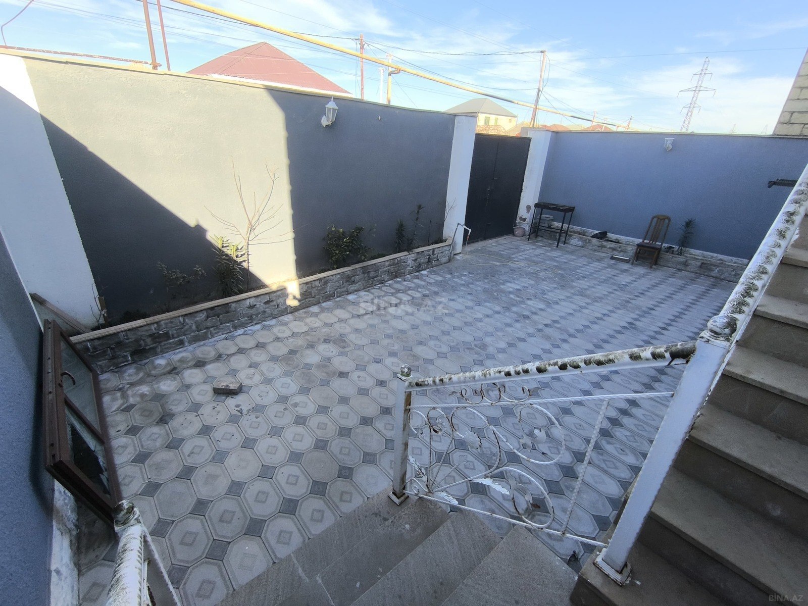 Şiferi vurulmayıb,Yarım tikili evdi,amma hər iki kəmeri töklüb,həm aşağı həm yuxarı,hündür zaboru çəklib,zaborun altıda karkaz,betondu,həyətdədə,hamam və kuxna hörülüb,tebiki yuxardada,həm kuxna,hamam-ayaqyolu və içinin kanazasiyasi çəklib,içinə beton tökülüb,üsdünədə beton tökülüb hamamın və 12 m uzunu 2 m enində kalidoru var,piləkəni və həyəti var.