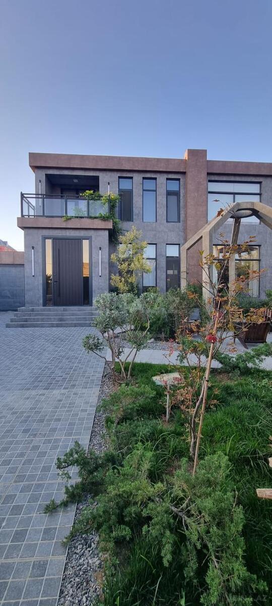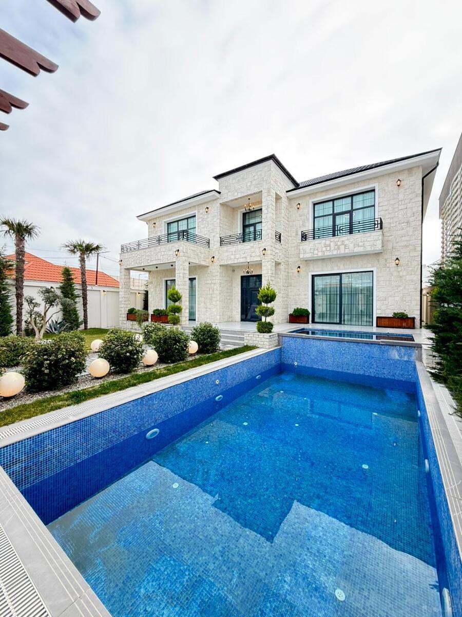 Həyətində müxtəlif növ bar verən və dekorativ ağaclar,ı hovuzu, manqalnisi, pultla idarə olunan qapısı var.