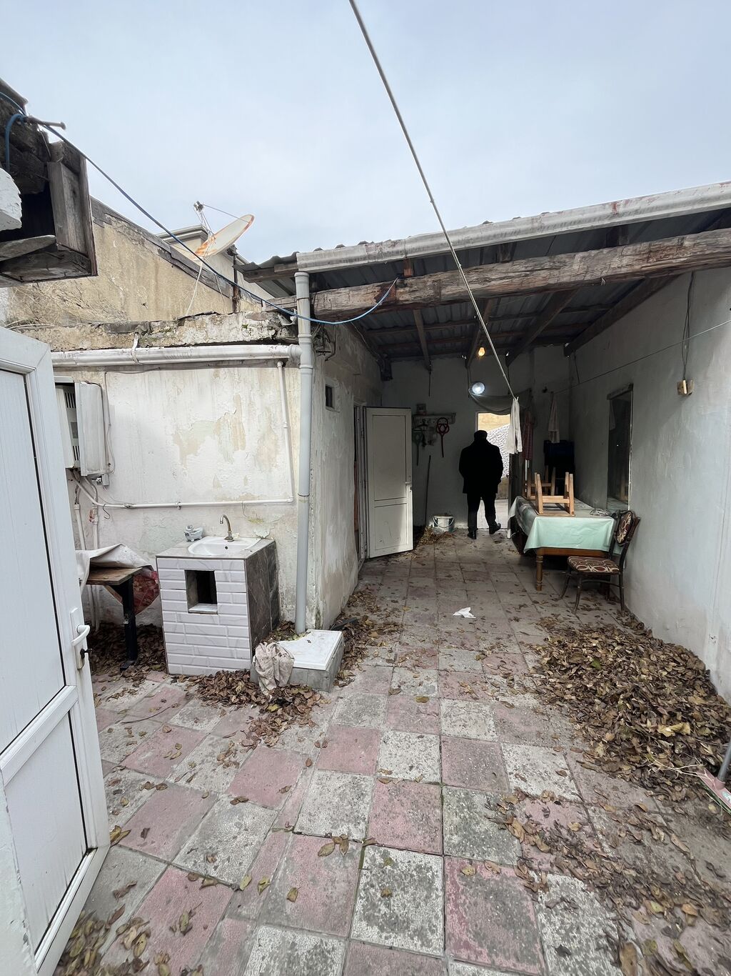- Tikili: Bir mərtəbəli həyət evi, beton/daş konstruksiya, üstü tam örtülü. Evin girişində pilləkənli eyvan/saçaqlı veranda. Pəncərələr plastik/profil, su və kanalizasiya xətləri evə daxil edilir. Yan tərəfdə yarıaçıq əlavə tikili və yardımçı sahə mövcuddur.