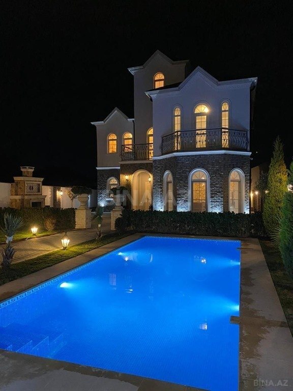 Salam her vaxtviz xeyir olsun sizlərə möhdəşəm bağ evini teqdim edirəm həyətyani sahesində , hovuz bisetka ve göz oxşayan renglrlə islənib bağ evi 5 sotdan ibarədir ✅️ 4 yataq ,1 zal , 1 metbex 3 sanuzel, gelen yol asvalt mehellenin gece isqlandirlmasi ,pulnan idarə olunan qapı