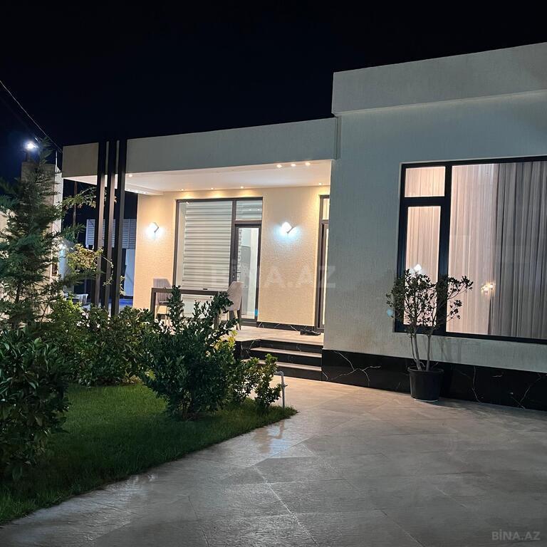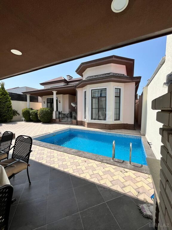 Salam her vaxtviz xeyir olsun sizlərə möhdəşəm bağ evini teqdim edirəm həyətyani sahesində , hovuz bisetka ve göz oxşayan renglrlə islənib bağ evi 5 sotdan ibarədir ✅️ 4 yataq ,1 zal , 1 metbex 3 sanuzel, gelen yol asvalt mehellenin gece isqlandirlmasi ,pulnan idarə olunan qapı