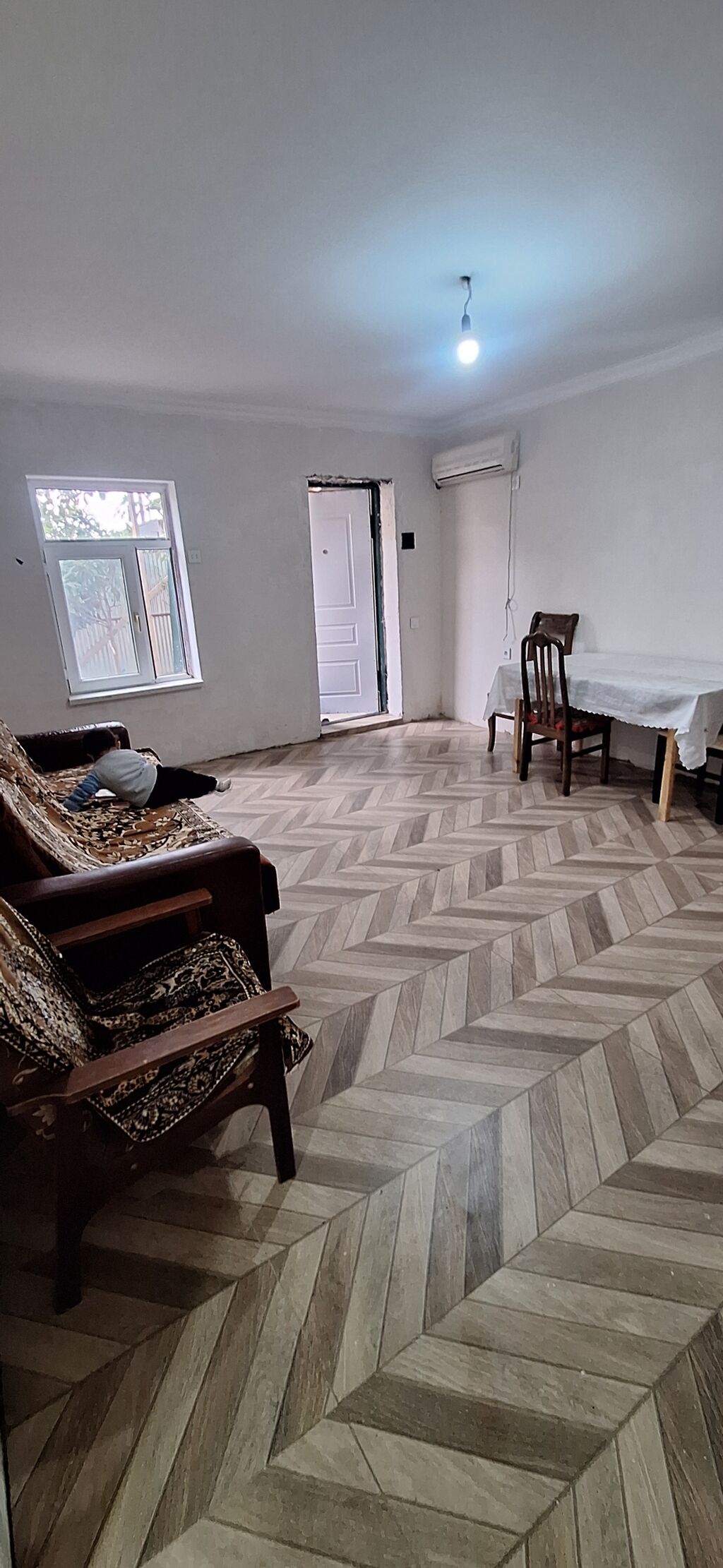 2 otaqli studio salon heyet evi.. isiq ,su ,qaz daimi .. istilik sistemi mene aiddi ..ev uzun muddetli yalniz Aileye verilir ...yer isdi poldu..