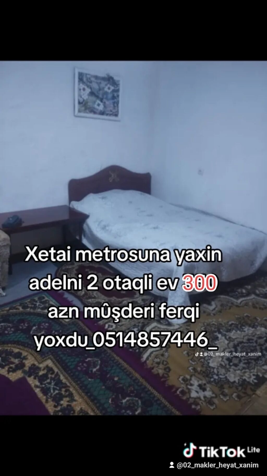 Xetai metrosuna yaxin adelni 2 otaqli ev 300 azn mûşderi ferqi yoxdu_0507396798