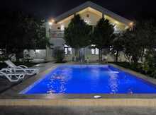 Bakı şəhəri, Şüvəlan qəsəbəsi, Mir Mövsüm ağa ziyarətgahına çatmamış,ana yola yaxın 3 sotun içində ümumi sahəsi 250 kv/m olan, 4 otaqlı əla təmirli tam əşyalı bağ evi günlük kirayə verilir.Bağımız incə zövqlə döşənib, əşyalar yenidir,istirahətiniz üçün lazimi hər şey var,bütün ev isti poldur, 2 sanuzel var biri yataq otağındadır.Həyətdə istirahət guşəsi, yelləncəyi,manqal,samovarı var.Filterli isti hovuzdur, 6*3 metrədir,dərinliyi 1.50 dir,hər dəfə xususi təmizlənir və dərmanlanır.Həyətə maşın girir,darvaza pultladır. Bir başa ev sahibindən verilir.