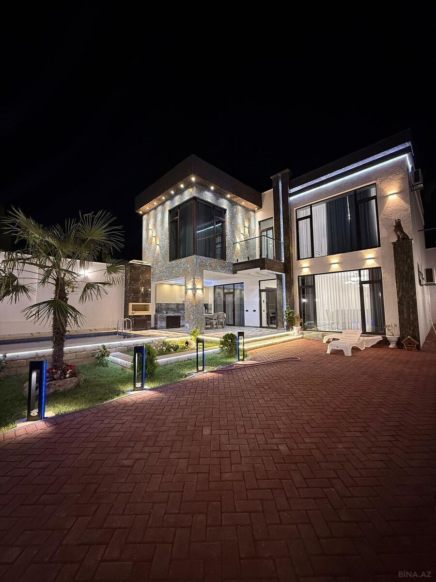 4 otaqlı müasir bağ evi günlük və aylıq kirayə verilir. 3 yataq otağı, və mətbəx studio. Həyətdə böyük hovuz, 3 maşın saxlamaq üçün yer var, manqal və yay mətbəxi. Yay Bisetkasi Baseni Filterlidir