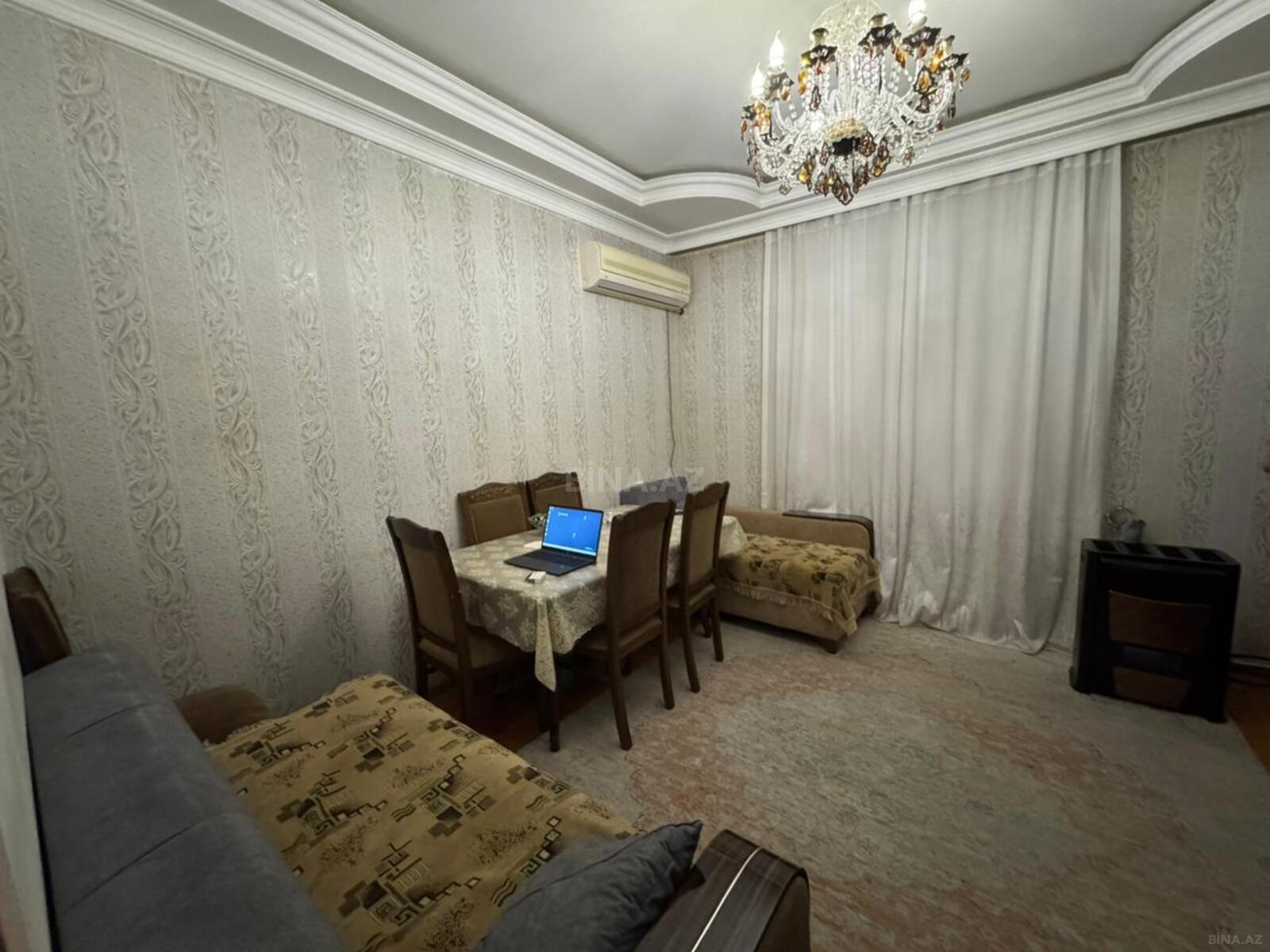 - Geniş qonaq otağı: klassik üslubda dəbli mebel, kristal çilçıraq, iri pəncərələr və pərdə dəsti, parket döşəmə, TV üçün guşə və vitrin şkaf.