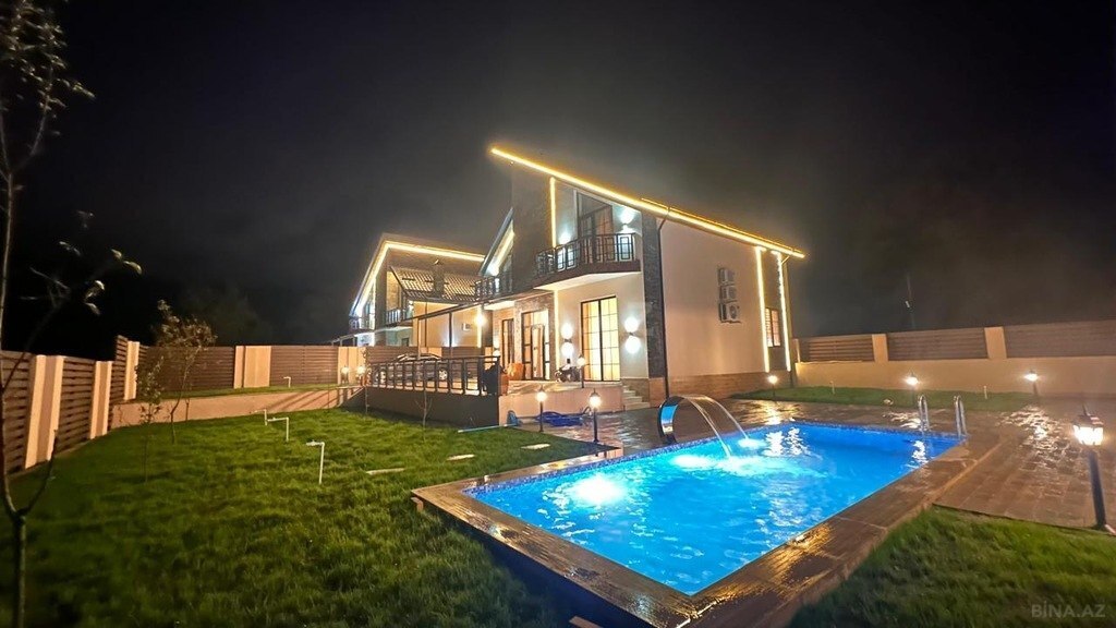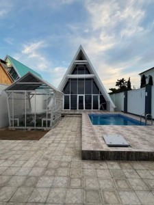 Bakı Şəhəri,Xəzər rayonu Şüvəlan qəsəbəsində yerləşən 100/kv metr genişliyində 4-otaqlı A-Frame bağ evi kirayə verilir günlük isti hovuzludur və şəkillərdə gördüyünüz kimi əşyalı tv,mətbəx üçün lazımı əşyalar tv,kondisaner hər bir şəraiti mövcuddur buyurub əlaqə saxlaya bilərsiniz!!!