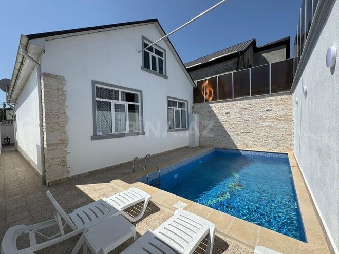Həyətində geniş İSTİ HOVUZ ️(istəyə görə), manqal,sac var.