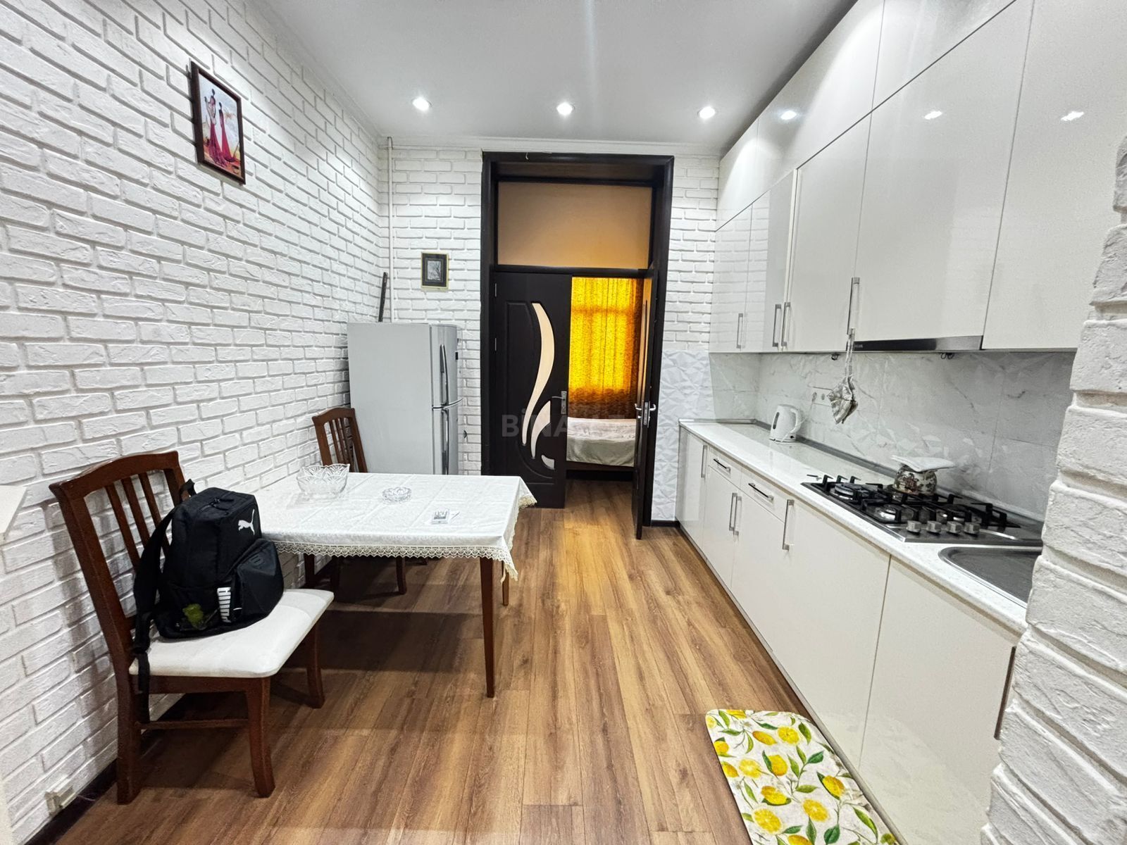 Mənzildə kondisioner, böyük soyuducu, kuxna mebeli, açılıb bağlanan divanlar, çarpayılar, iş masası, kombi sistemi, hər otaqda və hamamda radiator, paltaryuyan, stol, stullar, paltar şkafı, tozsoran, wifi və digər zəruri əşyalar var. Mənzilin qapalı balkonu var. Binanın altında Spar market və tərəvəz dükanları mövcuddur.