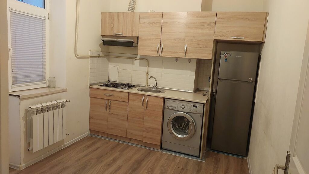- Mətbəx: yığma mətbəx mebeli, qaz plitəsi (2 göz), aspirator, paslanmayan polad əlüzyuyan, üst və alt şkaflar, işıqlandırma; soyuducu və paltaryuyan maşın quraşdırılıb.