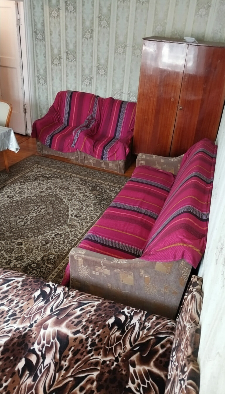 - Geniş, işıqlı zal: 1 ədəd divan, 1 ədəd tək çarpayı, iri naxışlı xalça, pərdə və oboylar, kvadrat masa və 2 stul. Otaqda iri taxta şkaf mövcuddur.