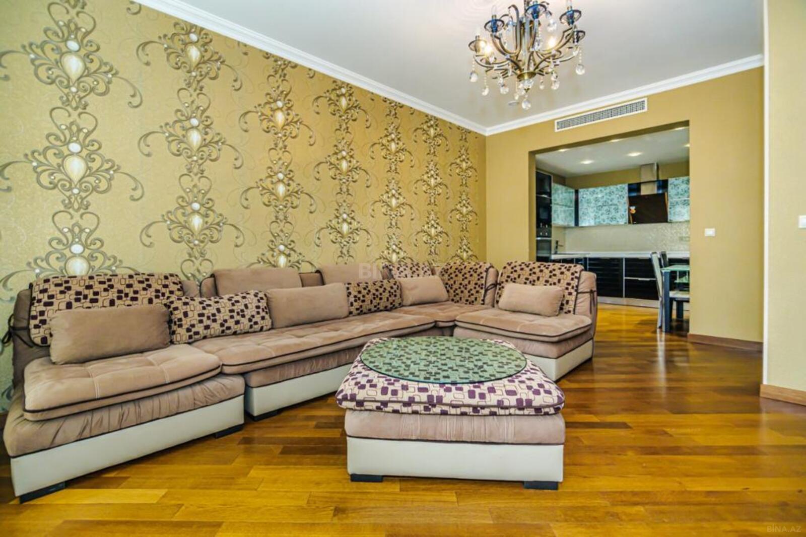 Yüksək keyfiyyətli əla təmir. Mərtəbə: 5/7. Ümümi sahəsi 165 m2., 3 açıq eyvanı, 2 s/q, duş kabina. Parket döşəmə, döşəmə qızdırıcısı, hündür tavan. KATV, internet-wifi. Quraşdırılmış mətbəx mebeli. İstilik sistemi “Kombi”. Mühafizə olunan həyəti, 1 sürətli lift, yerüstü və yeraltı avto dayanacaqlar, uşaq meydançası.