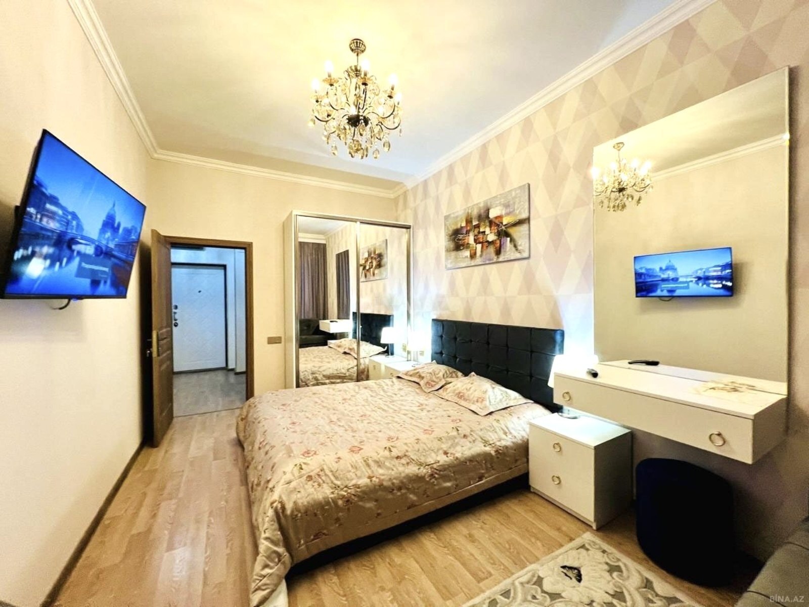 Mənzil tam yeni əşya və avadanlıqlarla təmin olunub.