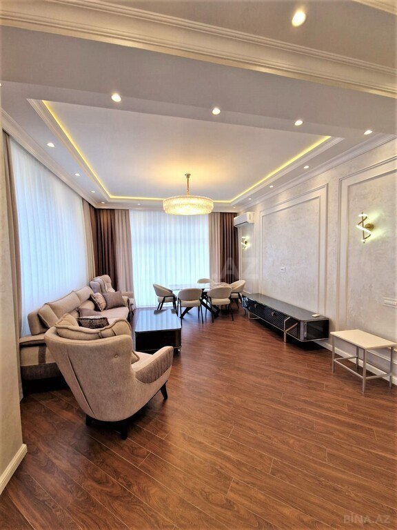Xətai rayonunda Ağ Şəhərdə Şəhərə və dənizə gözəl mənzərəli prestij binada. Dənizkənarı milli parka yaxın yeni tikili binada ümumi sahəsi 130 kv olan 3 otaqlı əla təmirli mənzil kirayə verilir.Mənzildə istilik sistemi kombidir.Moderin interyerə malik dəbdəbəli təmir.Binanın yeraltı qarajı var. 24 saat mühafizəsi var. Binanın yanında məktəb,baxça,market və iaşə obyektləri var .