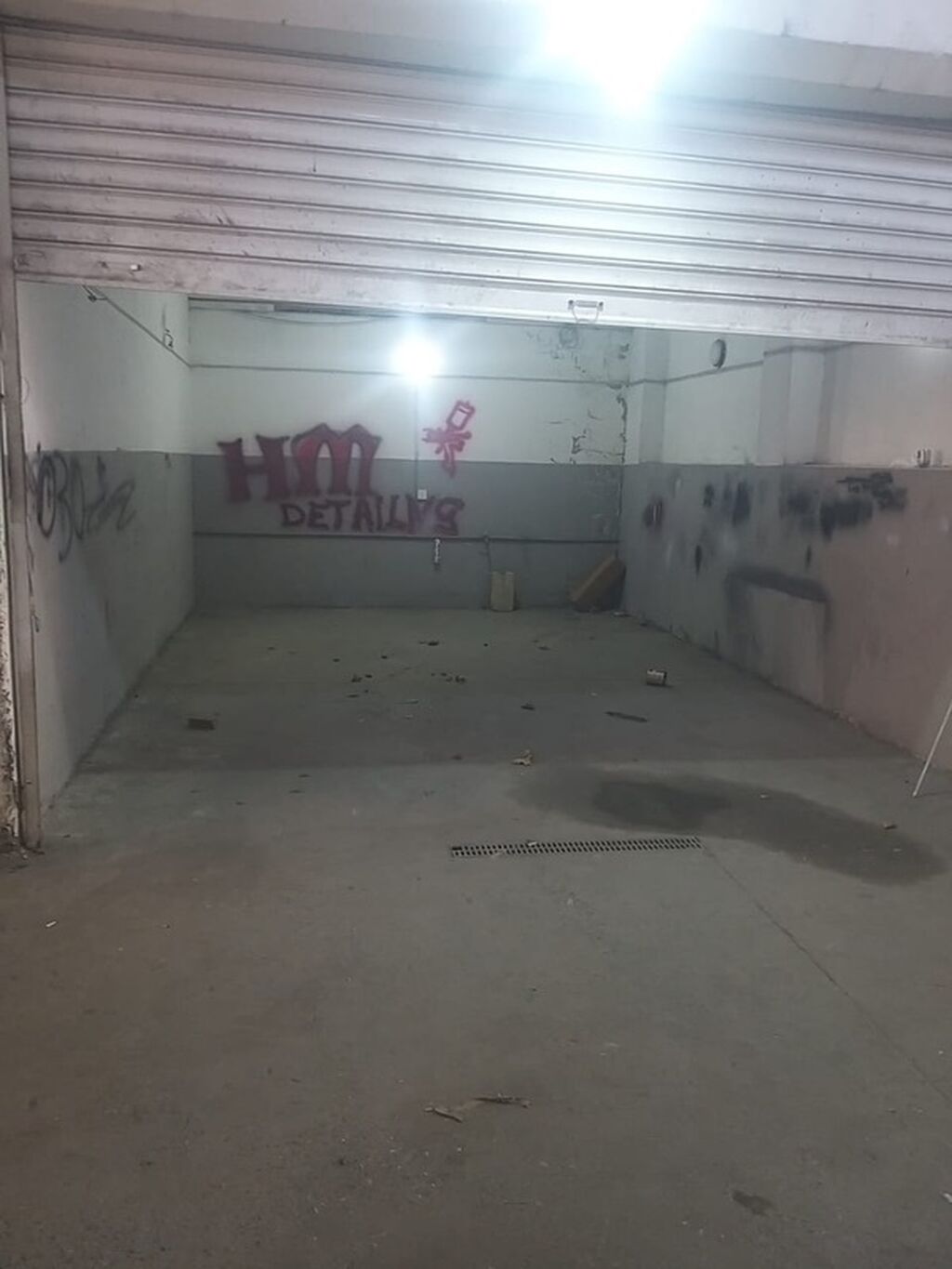 Geniş kommersiya məkanı, avtomobil xidmətləri və ya oxşar təyinatlı biznes üçün uyğundur. Daxili divarlar qara rəngdədir, tavanında işıqlandırma elementləri var. Məkanın ön hissəsində metal qaraj qapısı mövcuddur. İki ayrı sahədən ibarətdir, biri əsas iş sahəsi, digəri isə əlavə funksionallıq üçün istifadə oluna bilər. Divarlarda qraffiti izləri müşahidə olunur.40x40 kv dir