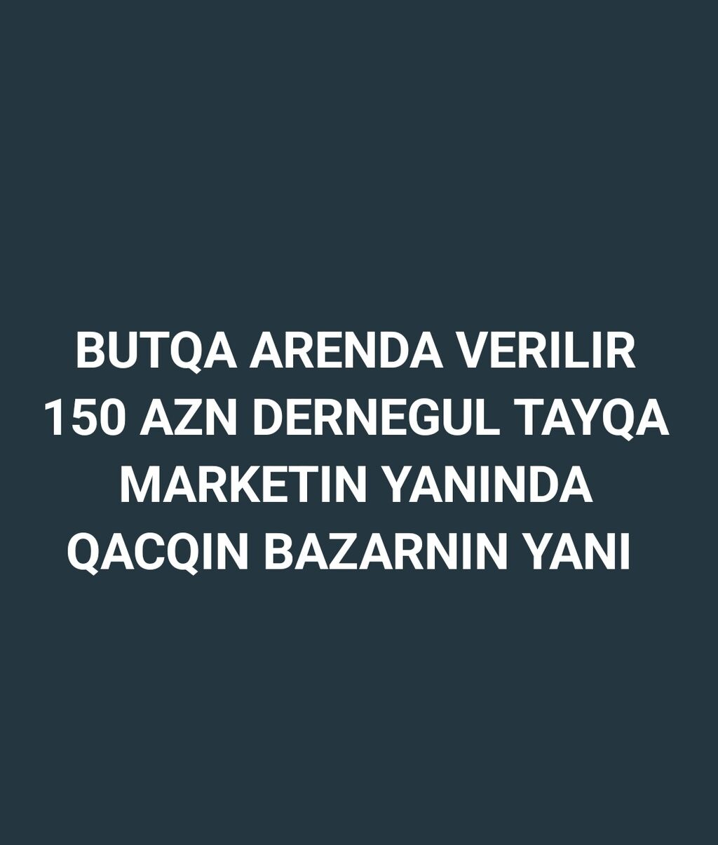 Butqa arendaya verilir. - Aylıq 150 AZN - Məkan: Dərnəgül, Tayqa Marketin yanında, Qaçqın Bazarının yanı İcarəyə uyğun butqa (ticarət köşkü) yerində hazırdır, piyada axını olan ərazidə yerləşir. Yaxınlıqda market və bazar olduğuna görə müştəri cəlbi üçün əlverişlidir. Satış, çörək‑şirniyyat, qəlyanaltı və digər kiçik ticarət məqsədləri üçün uyğundur.