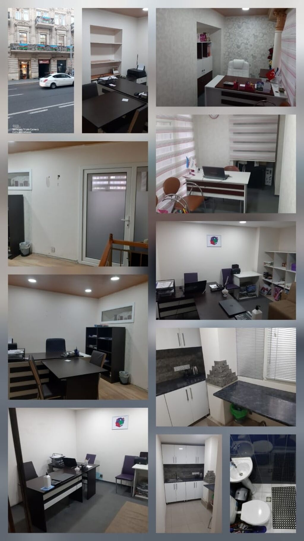 İcarəyə ofis sahəsi - Ünvan: şəhər mərkəzində, əsas prospekt yaxınlığında yerləşən müstəqil girişli iki səviyyəli ofis - Planlama: resepsiyon/qarşılama zonası, bir neçə ayrı iş otağı, iclas üçün geniş masa zonası, menecer kabineti, açıq iş sahəsi, arxiv/raf sistemləri, mətbəx-bufet, sanitar qovşaq - Ümumi xüsusiyyətlər: - İşıqlı və havadar otaqlar, geniş pəncərələr, jalüz pərdələr - LED işıqlandırma, kombinə edilmiş işıq nöqtələri - Kondisioner, istilik sistemi - İnternet/şəbəkə üçün kabelləmə, çoxsaylı elektrik rozetkaları - Plastik pəncərə və qapılar, təhlükəsizlik barmaqlıqları - Taxta pilləkən, laminat və kafel döşəmə - Girişdə vitrin pəncərələr, binanın küçəyə çıxışı - ...