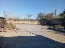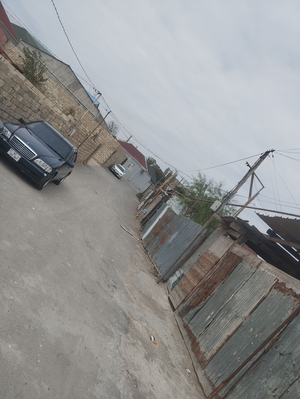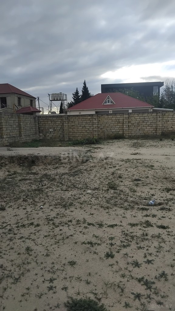 Hündür daş hasarlı, darvazalı həyət sahəsi. İçərisində köməkçi tikili (beton/daşdan), pəncərəli və qapılı otaq, üstəlik ayrıca beton su çəni/platfoması mövcuddur. Torpaq sahəsi düzləndirilmiş, əkin/bağ üçün münasibdir; həyətin bir küncündə dairəvi daşdan qurulmuş ocaq/quyu konstruksiyası görünür. Elektrik xətləri küçədən keçir, giriş metal darvaza ilə təmin olunub. Şəhər tipli məhəllə mühitində, qonşu evlərlə əhatələnmişdir. Öz həyətində kiçik təsərrüfat, anbar, emalatxana və ya bağ üçün əlverişli boş sahə.