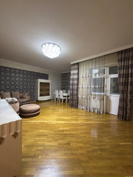 Geniş həyəti və özünə məxsus parkı (yaşıllıq zonası) olan, 13 mərtəbəli binanın 3-cü mərtəbəsində, layihə ilə və real 3 otaqlı, 2 sanitar qovşağı olan, 130m², əla təmirli mənzil, bahalı əşyalarla birlikdə satılır.