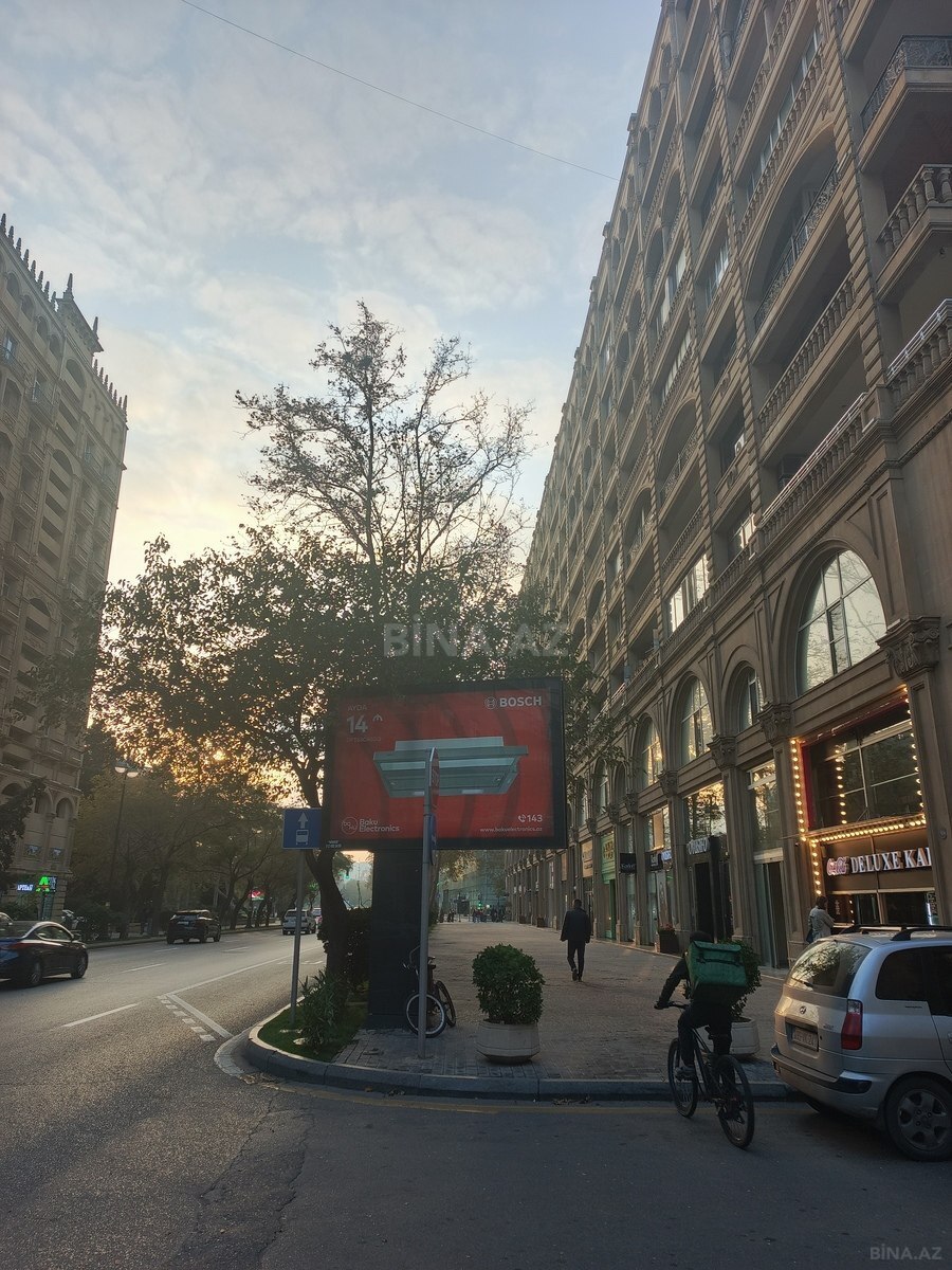 Nəsimi rayonu, 28 may metrosunun 2-ci çıxışın yaxınlığında yerləşir. 18 mərtəbəli binanın 13-cü mərtəbəsində yerləşir. 2 otaqlıdır (studio). Sahəsi 42 kvadratdır. Yeni təmirlidir və əşyalı satılır. Bina 24 saat mühafizə edilir. Çıxarış var. Yeraltı dayanacaq mövcuddur. İnfrastruktur cəhətdən əlverişli ərazidə yerləşir. Azərbaycan Dillər Universiteti, Bakı Slavyan Universiteti, 164 saylı tam orta məktəb yaxınlıqda yerləşir.