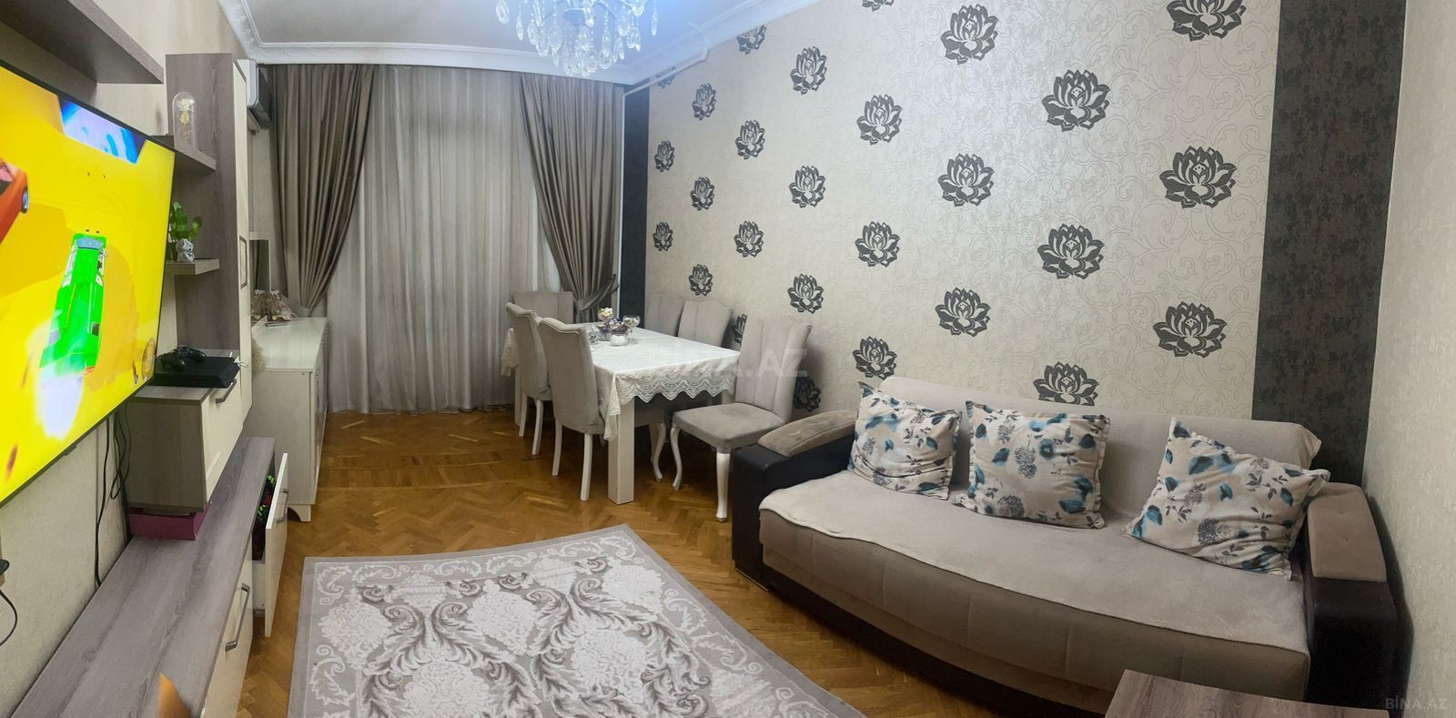Təmir: Zövqlə təmir olunub – laminat döşəmə, quraşdırılmış mətbəx mebeli, kondisioner, səliqəli və baxımlı. Gəl, birbaşa yaşa!
