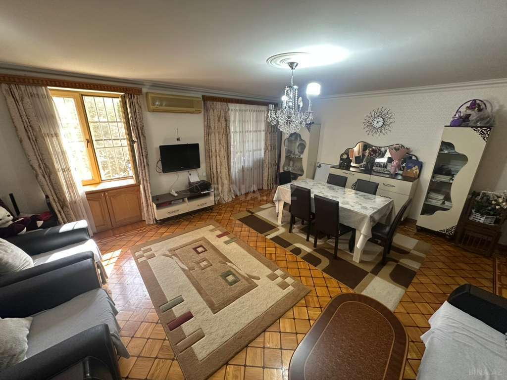 Orta təmirli! Ümümi sahəsi: artırma ilə 100 kv.m.(Çıxarışda 63 kv.m.) Mərtəbə: 1/5. Parket döşəmə. Mənzil yelçəkəndir! Özünün şəxsi geniş həyəti var, həyətin sənədi bələdiyyədir.