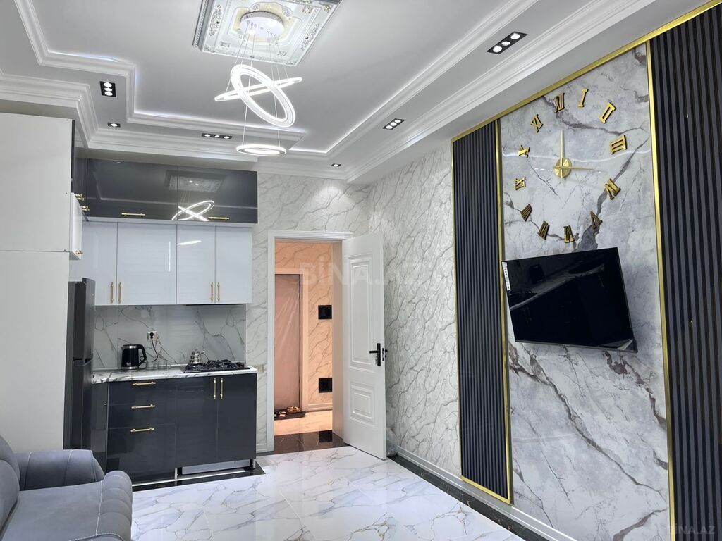 Mənzil supertəmir olunub istilik sistemi kombidir.Yerdən isitmə isti pol var.Pərdə lüstür mətbəx mebeli var.