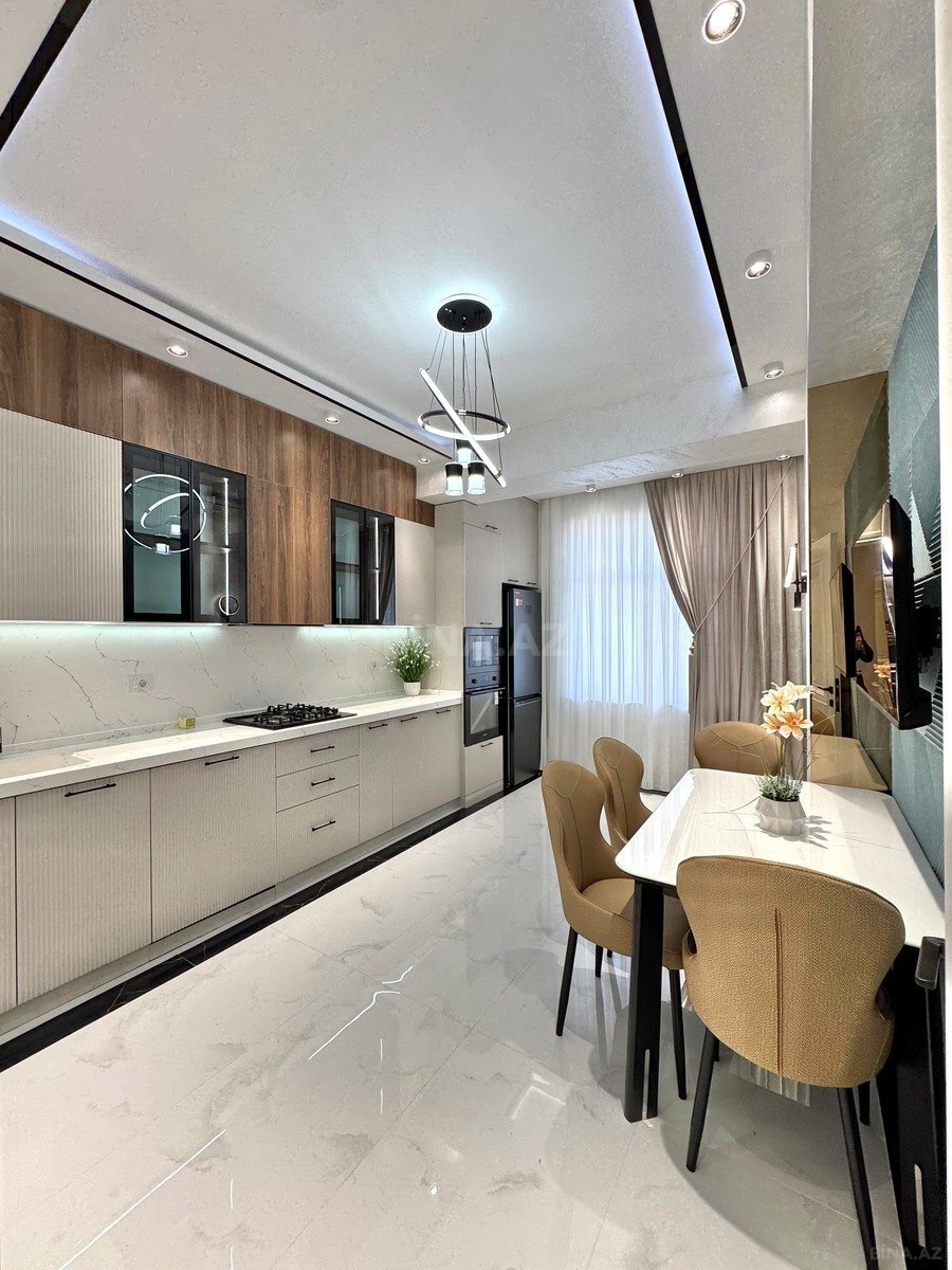 Ag Şeherin en prestijli binasında,sahesi 130m2olan 3 otaqlı ,ela temirli menzil ,eşyalı satışa teklif olunur.